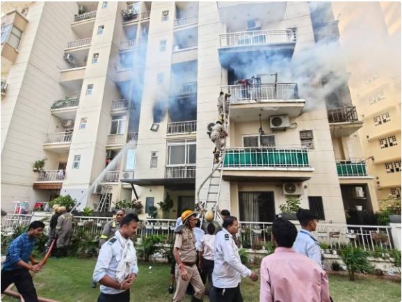 मंगलवार दोपहर एक टावर से निकलते काले धुएं और लपटों को देख लोगों ने इसकी जानकारी दमकल विभाग को दी। जानकारी दी गई थी यहां दो से तीन फ्लैटों में आग लगी है। ऐसे में छह गाड़ियों को भेजा गया था। यहां आकर देखा तो टावर नंबर 11 फ्लैट नंबर 201 में आग लगी थी। दो गाड़ियों की मदद से आग को बुझा दिया गया है।