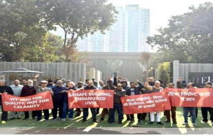 नोएडा की सोसायटी में बिल्डर-प्राधिकरण के खिलाफ प्रदर्शन, निवासियों का आरोप- मिलीभगत से ग्रीन बेल्ट पर किया कब्जा