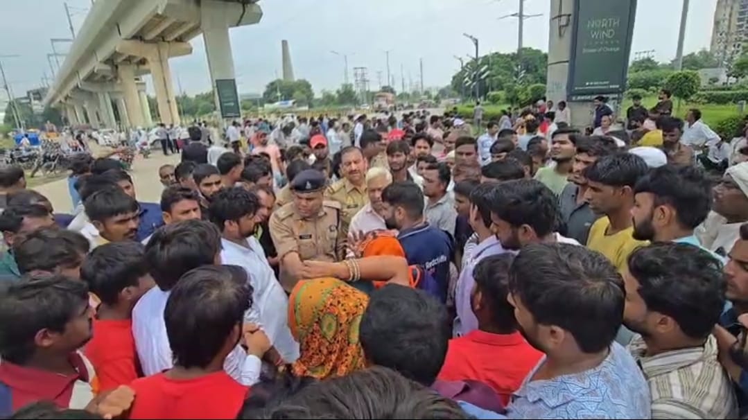 संचार नाउ। ग्रेटर नोएडा के सूरजपुर थाना क्षेत्र के अंतर्गत जैतपुर गांव में गुरुवार को करंट लगने से हुई युवक की मौत के बाद हालात बेकाबू हो गए। मृतक के परिजनों ने हत्या का आरोप लगाते हुए शव को ग्रेटर नोएडा प्राधिकरण के पास गोलचक्कर पर रख दिया और जाम लगा दिया। देखते ही देखते चारों तरफ वाहनों की लंबी कतारें लग गईं और अफरा-तफरी का माहौल बन गया। सूचना मिलते ही भारी पुलिस बल मौके पर पहुंचा और परिजनों को समझाने का प्रयास किया जा रहा है, लेकिन अभी तक कोई सहमति नहीं बन पाई है।