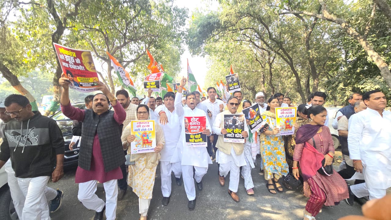 दरअसल, कांग्रेस कार्यकर्ताओं ने चुनाव प्रक्रिया में कथित गड़बड़ियों के खिलाफ नारेबाजी करते हुए लोकतंत्र की रक्षा की मांग की। कांग्रेस प्रवक्ता दुष्यंत नागर ने बताया कि राहुल गांधी द्वारा उठाया गया यह मुद्दा देश के हर मतदाता को जागरूक करने के लिए है। उन्होंने कहा कि डिजिटाइजेशन के दौर में वोट चोरी जैसी घटनाओं से लोकतंत्र की जड़ों को कमजोर करने की कोशिश की जा रही है। इस आंदोलन का उद्देश्य मतदाताओं को अपने अधिकारों के प्रति सजग और सशक्त बनाना है।