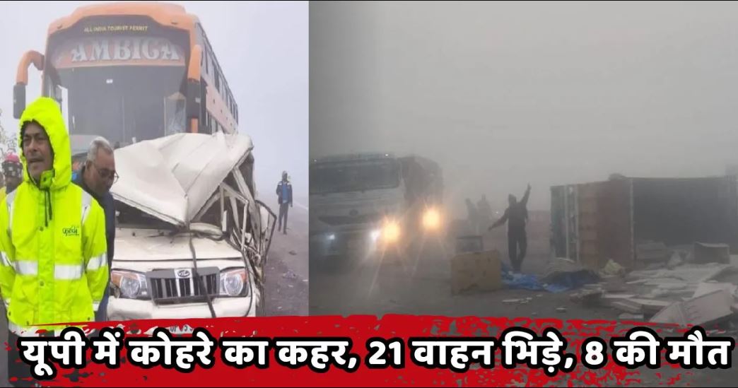 कानपुर। उत्तर प्रदेश में रविवार को घने कोहरे के चलते पांच जिलों में भीषण हादसे हुए। 21 वाहनों की भीषण भिड़ंत में 8 लोगों की मौत हो गई, जबकि 14 लोग गंभीर रूप से घायल हो गए। हादसे की वजह कई जगह हाईवे में यातायात प्रभावित रहा। जाम की स्थिति बनी रही। वहीं, कोहरे की वजह से कई ट्रेनें लेट रहीं। इससे रेलवे यात्रियों को ठंड में ट्रेन का इंतजार करते हुए परेशानी हुई।