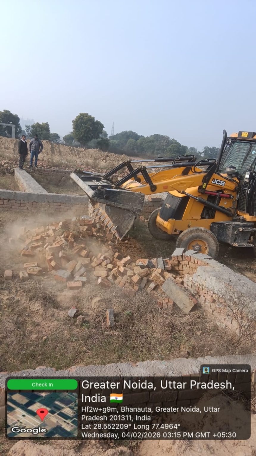 भनौता में चला ग्रेनो प्राधिकरण का बुल्डोजर, 10,000 वर्ग मीटर जमीन से हटाया अतिक्रमण