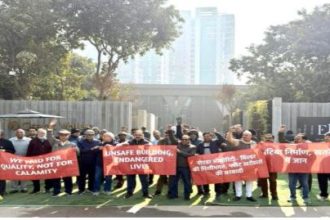 नोएडा की सोसायटी में बिल्डर-प्राधिकरण के खिलाफ प्रदर्शन, निवासियों का आरोप- मिलीभगत से ग्रीन बेल्ट पर किया कब्जा