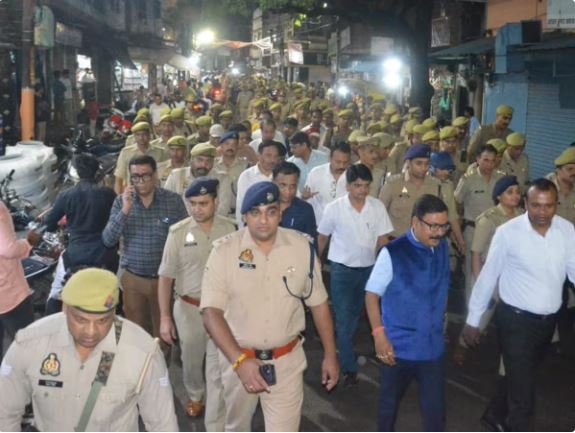 गुरुवार शाम एडीजी रमित शर्मा और कमिश्नर भूपेंद्र एस चौधरी के नेतृत्व में जनपद के पुलिस एवं प्रशासन के सभी अफसर शहर के संवेदनशील इलाकों में पैदल गश्त को निकले। इस दौरान अफसरों ने क्षेत्र के लोगों से बातचीत कर आश्वस्त किया कि किसी को शहर का माहौल नहीं खराब करने दिया जाएगा। कानून व्यवस्था का पालन करने वालों के साथ पुलिस हर कदम पर मौजूद है लेकिन खुराफातियों से सख्ती से निपटा जाएगा। इस दौरान डीआईजी अजय साहनी, डीएम अविनाश सिंह, एसएसपी अनुराग आर्य और जनपद के सभी अफसर मौजूद रहे।