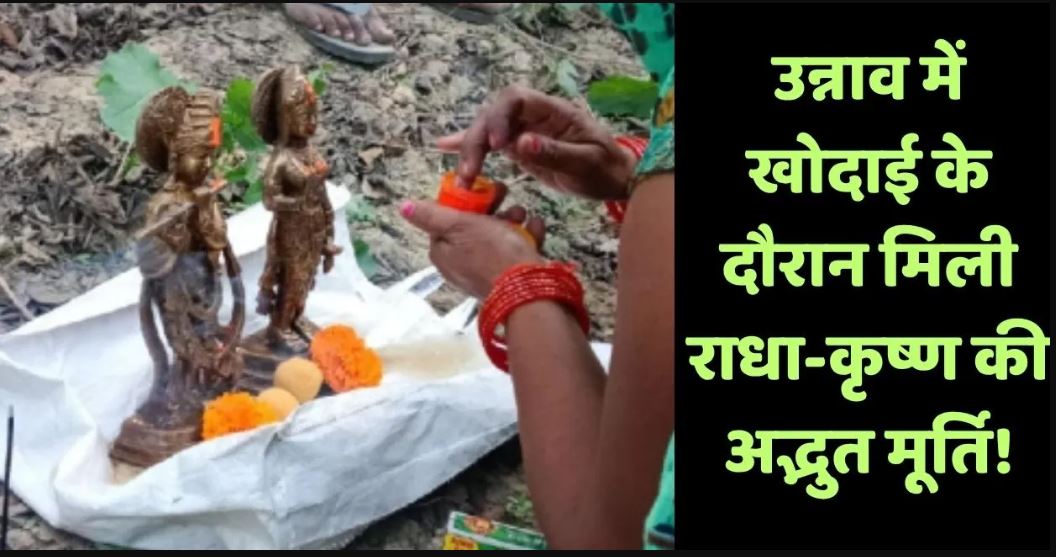 उन्नाव। उन्नाव में खेत में खोदाई के दौरान राधा कृष्ण की मूर्ति मिली। मूर्ति की रक्षा एक सांप कर रहा था। साथ ही उसके पास ही एक प्राचीन भोजपत्र रखा हुआ था। मूर्ति मिलने के कुछ ही देर बाद सांप की मौत हो गई। इसके बाद से जिसे मूर्ति मिली उस किसान की तबियत बिगड़ गई है।